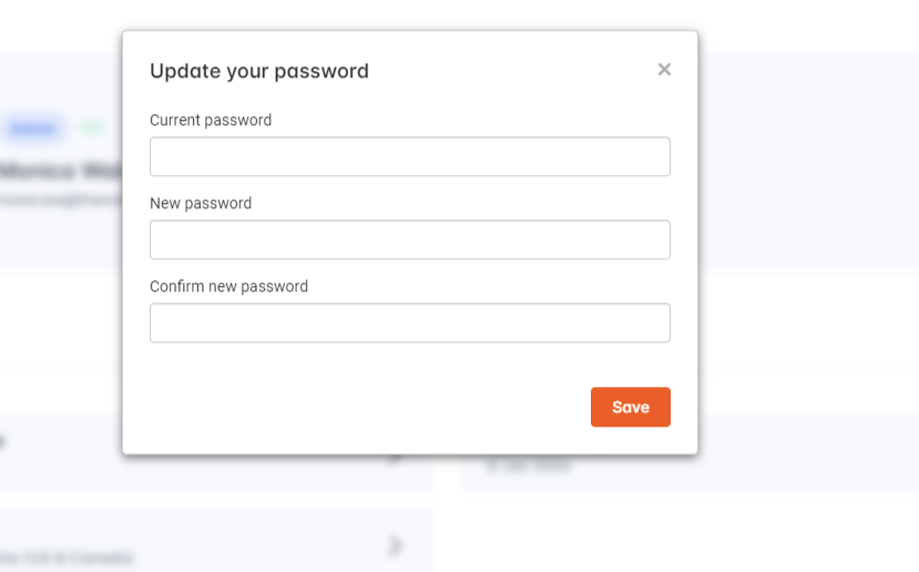 4. A window will appear where you can change your password. Enter your Current Password, new Password, and confirm the new password; then click Save.