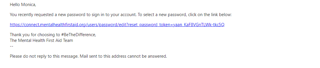 1. Go to https://work.mentalhealthfirstaid.org/ and click on Forgot your Password?