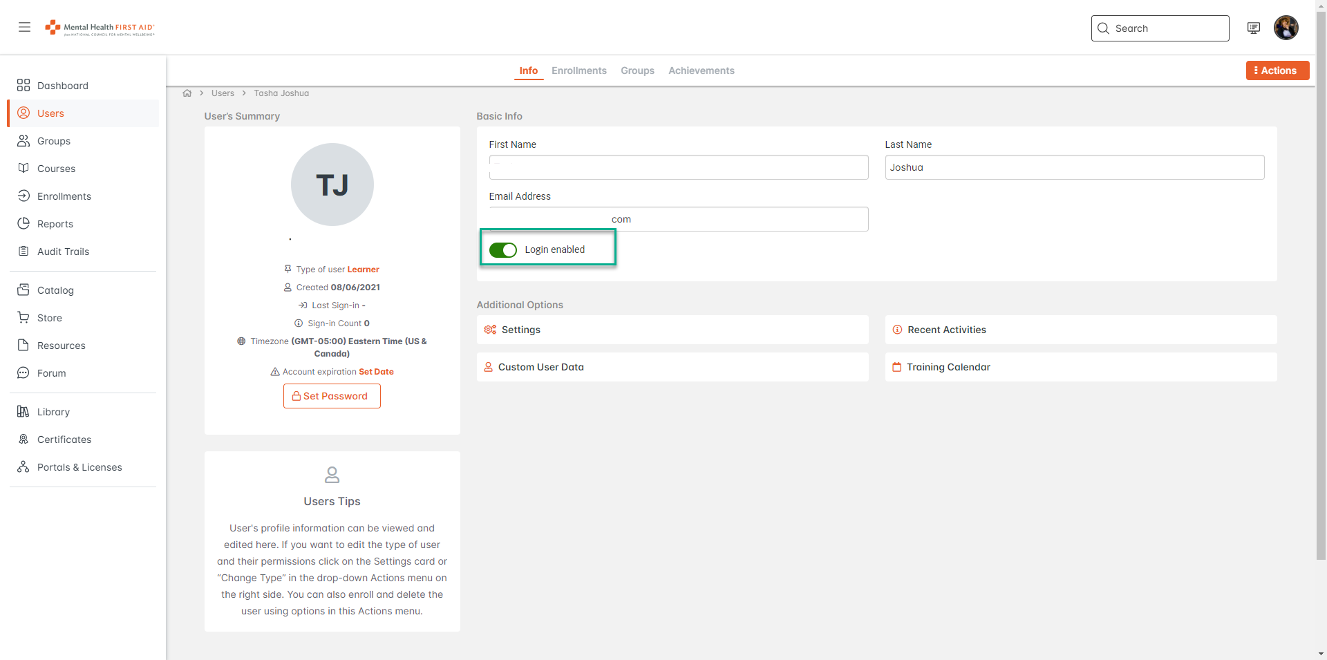 2. Make sure that login enabled is toggled on